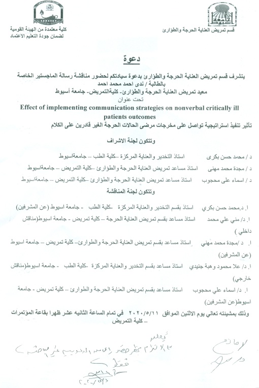مناقشة رسالة الماجستير للباحثة / ندى أحمد محمد أحمد 5 مايو 2020 مناقشة رسالة الماجستير للباحثة / ندى أحمد محمد أحمد