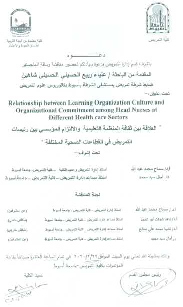 مناقشة رسالة الماجستير للباحثة / علياء ربيع الحسيني الحسيني شاهين 19 فبراير 2020 مناقشة رسالة الماجستير للباحثة / علياء ربيع الحسيني الحسيني شاهين