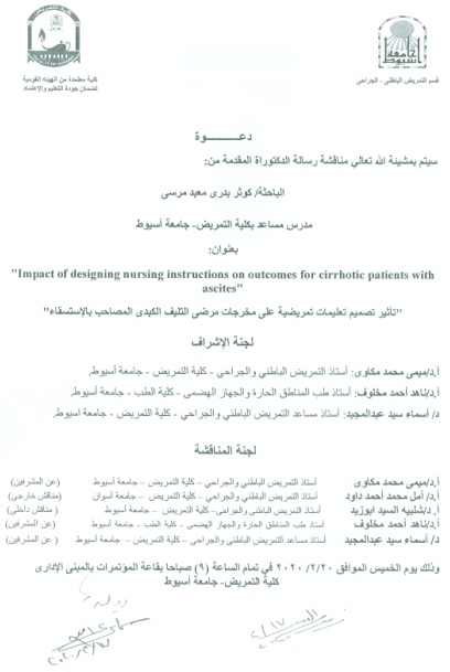 مناقشة رسالة الدكتوراه للباحثة/ كوثر بدري معبد مرسي 19 فبراير 2020 مناقشة رسالة الدكتوراه للباحثة/ كوثر بدري معبد مرسي