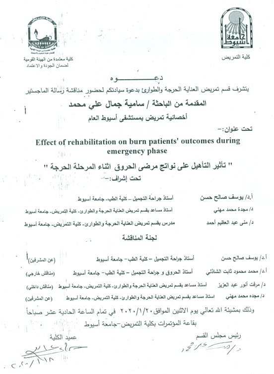 مناقشة رسالة الماجستير للباحثة / سامية جمال علي محمد 19 يناير 2020 مناقشة رسالة الماجستير للباحثة / سامية جمال علي محمد