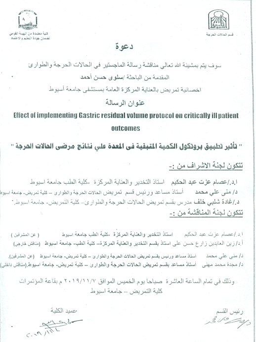 مناقشة رسالة الماجستير للباحثة / سلوى حسن أحمد 7 نوفمبر 2019 مناقشة رسالة الماجستير للباحثة / سلوى حسن أحمد