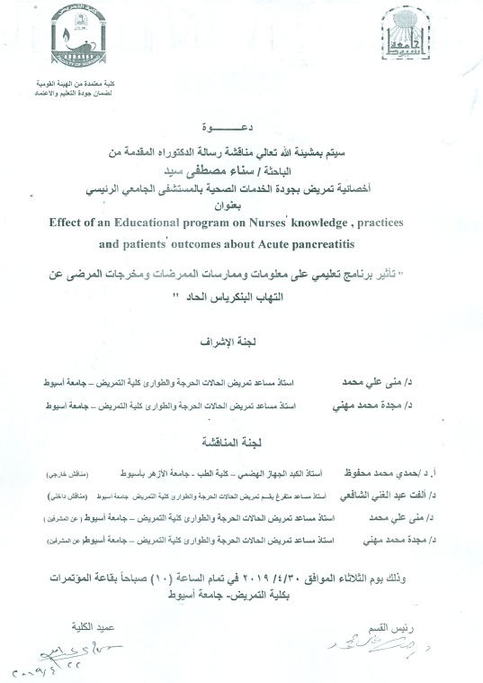 مناقشة رسالة الدكتوراه للباحثة / سناء مصطفى سيد 30 أبريل 2019 مناقشة رسالة الدكتوراه للباحثة / سناء مصطفى سيد