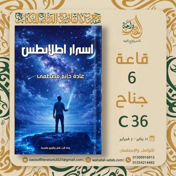 للتعاقد مع واحة الأدب للنشر والتوزيع والترجمة عن رواياتها (أسرار اطلانطس) وعرضها فى معرض الكتاب الدولى للعام ٢٠٢٦م.
