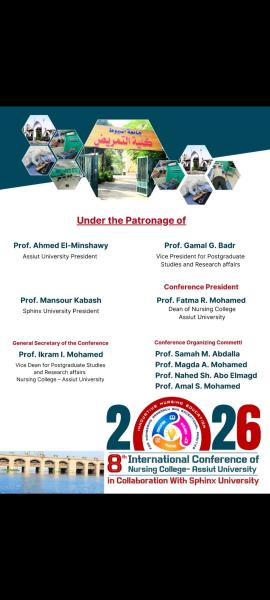 المؤتمر الدولي الثامن لكلية التمريض – جامعة أسيوط بعنوان (تعليم تمريضي مبتكر من أجل أبحاث رائدة وممارسة استثنائية). تحت رعاية الأستاذ الدكتور/ أحمد المنشاوي رئيس جامعة أسيوط