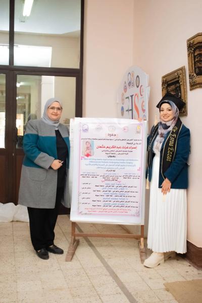 تهنئة بقبول رسالة الماجستير تتقدم كلية التمريض – جامعة أسيوط بخالص التهنئة للباحثة/ إسراء عزت عبد الكريم عثمان معيدة بقسم التمريض الباطني والجراحي كلية التمريض – جامعة أسيوط بمناسبة قبول رسالة الماجستير