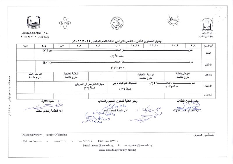 جدول امتحان درجة الماجستير في تمريض البالغين الجزء الثاني دور ابريل 2026م