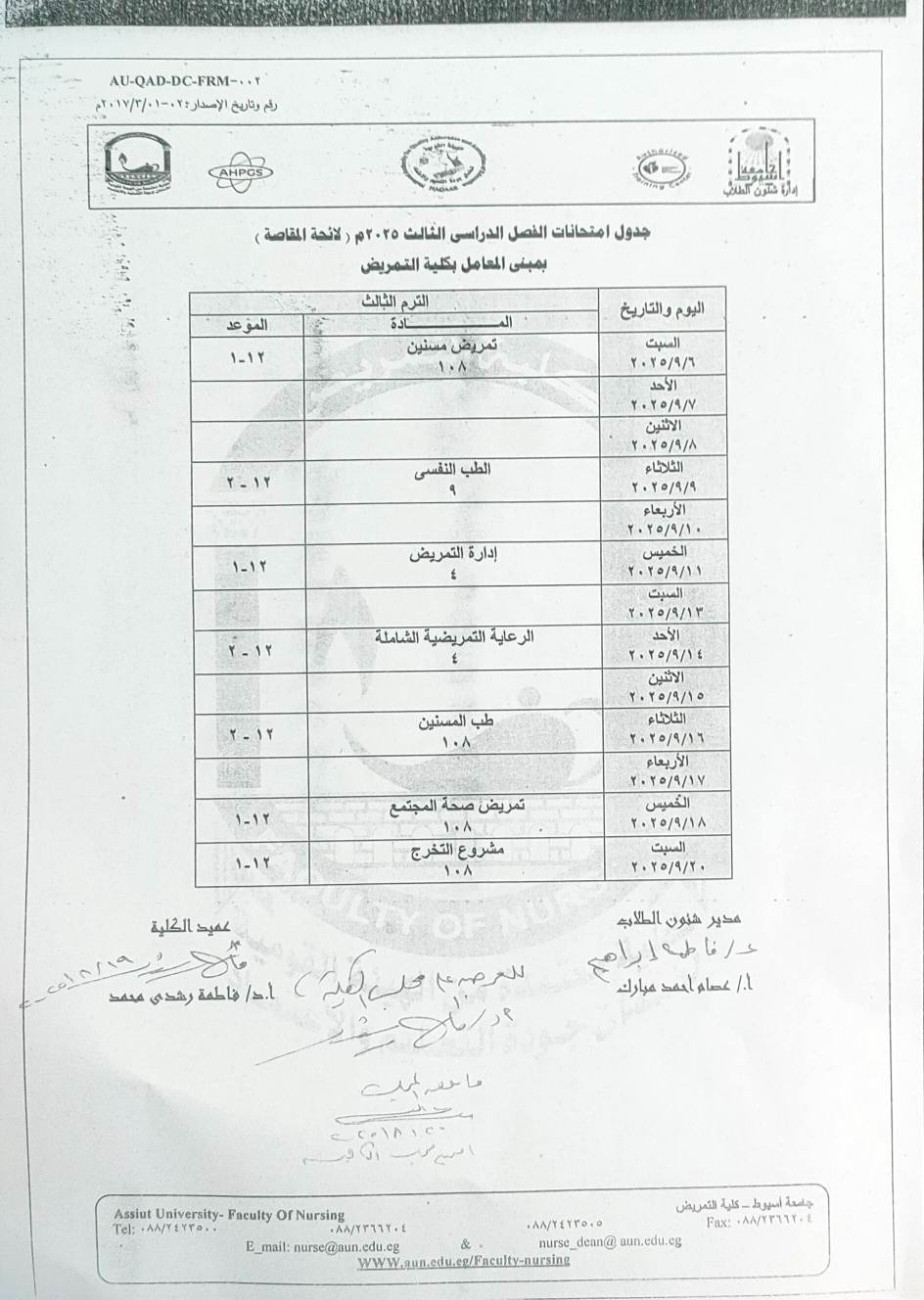 جدول الفصل الدراسي الاول للعام الجامعي 2024/2025م