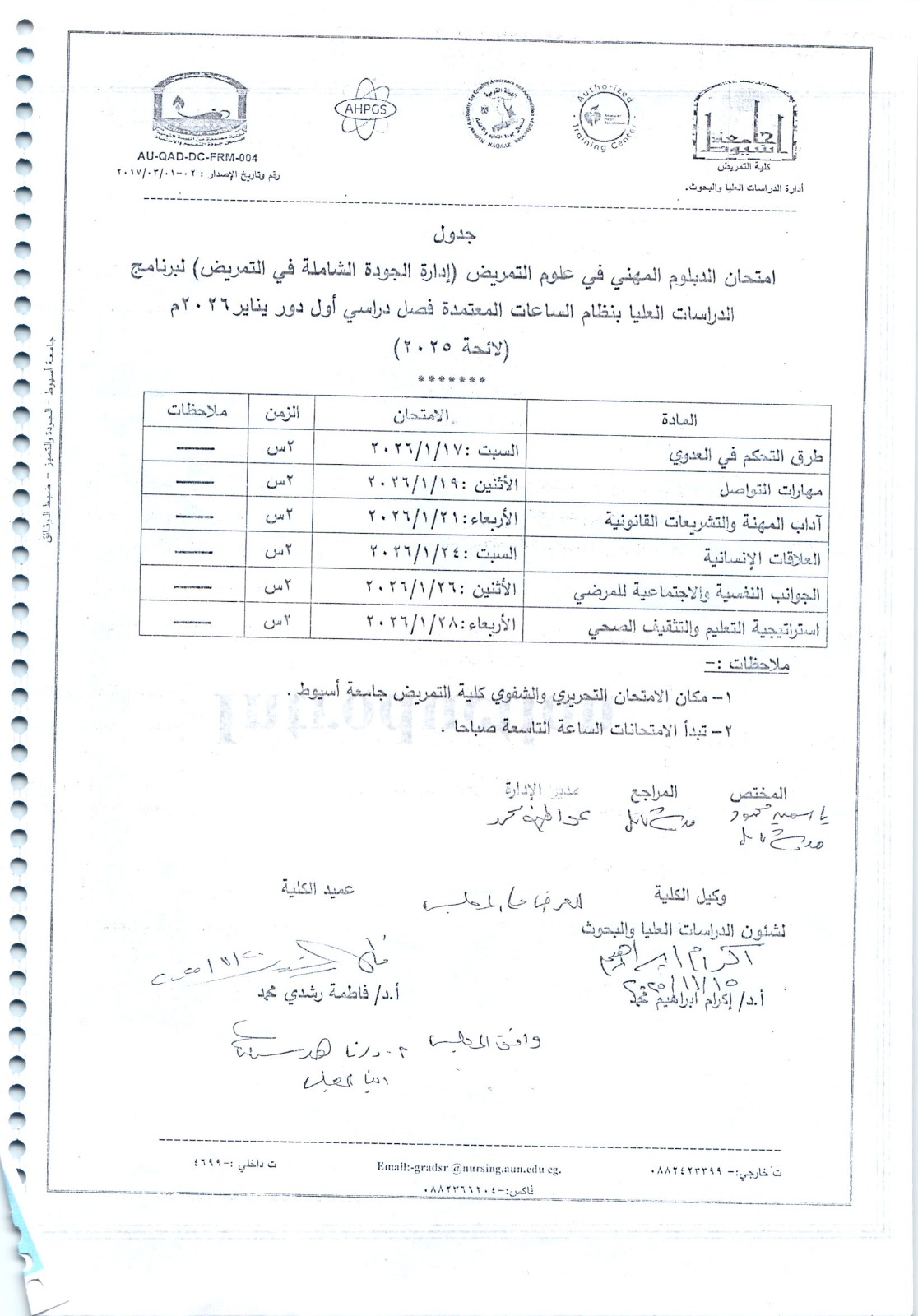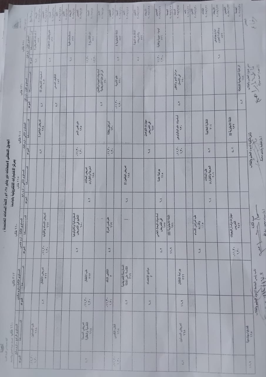 جدول الامتحانات الفصلية للمستويات المختلفة للفصل الدراسي الأول للعام الجامعي 2025/2026م