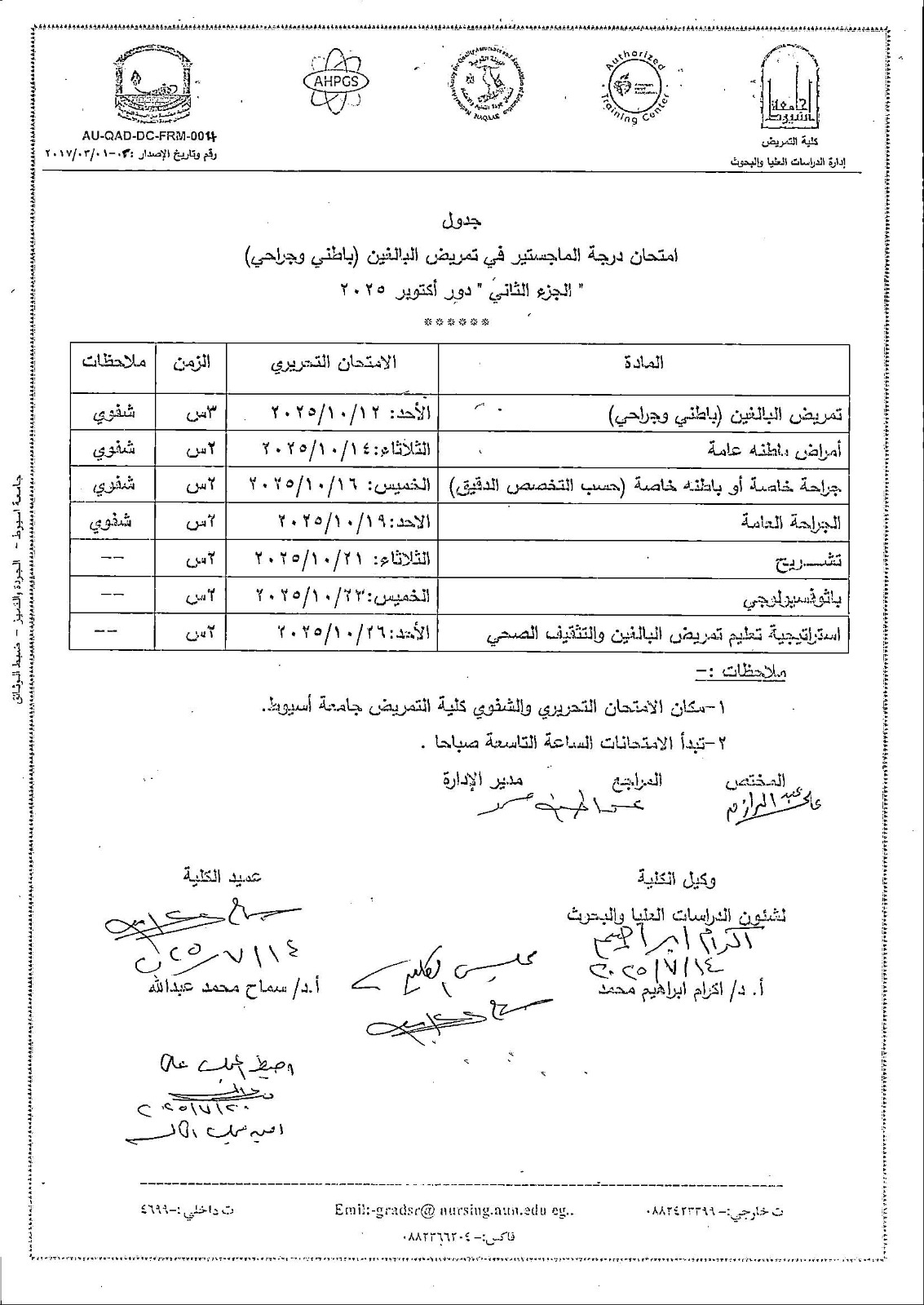 جدول امتحان ماجستيردور نوفمبر 2025م .