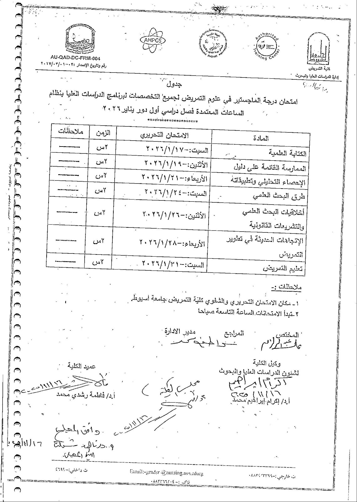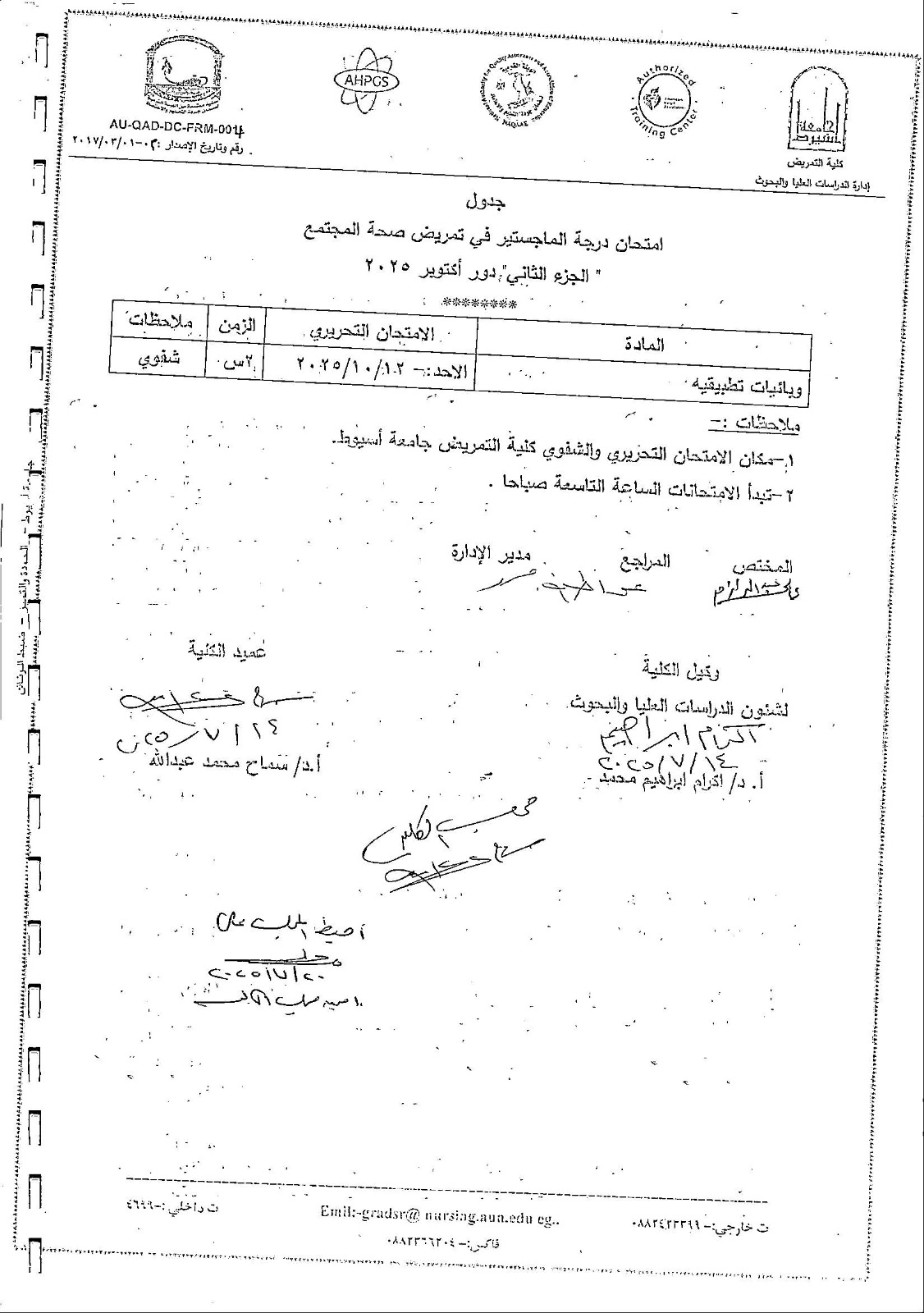 جدول امتحان ماجستيردور ابريل 2025م .