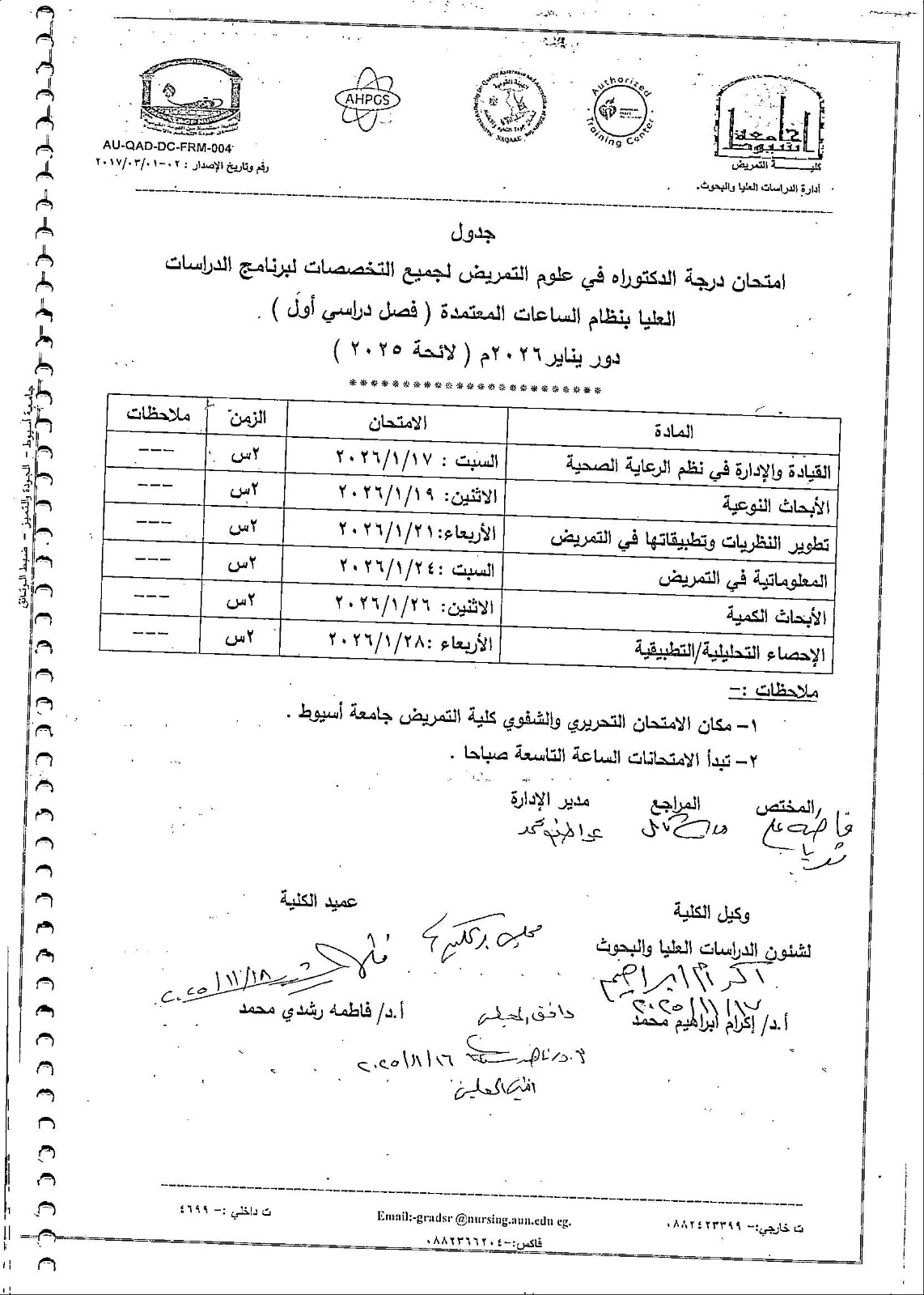 جداول امتحان الدكتوراه دور نوفمبر 2025م .