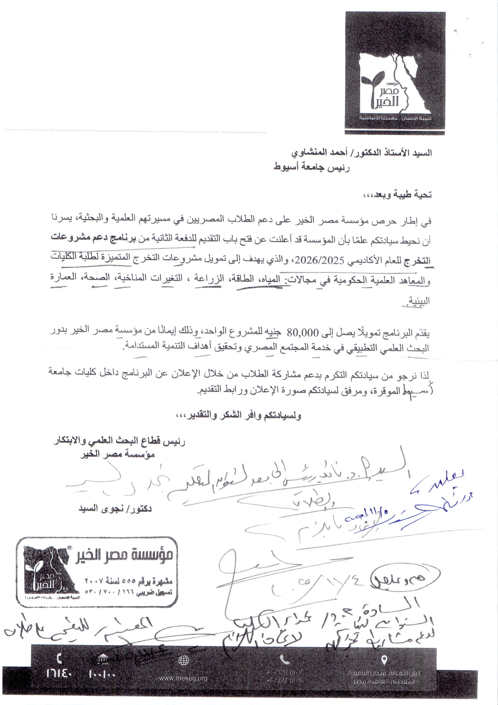 تتقدّم كلية التمريض – جامعة أسيوط بخالص التهاني والتبريكات إلى