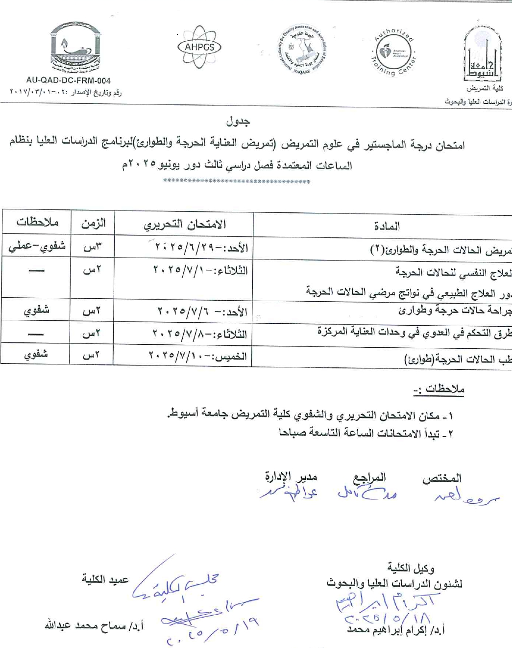 أ.د. سحر محمد مرسي أستاذ إدارة التمريض كلية التمريض – جامعة أسيوط. (مناقش داخلي)