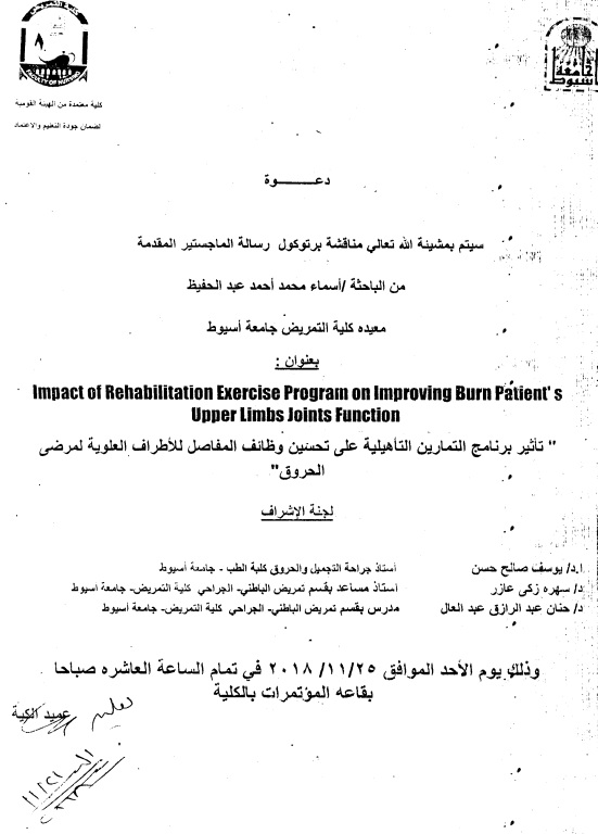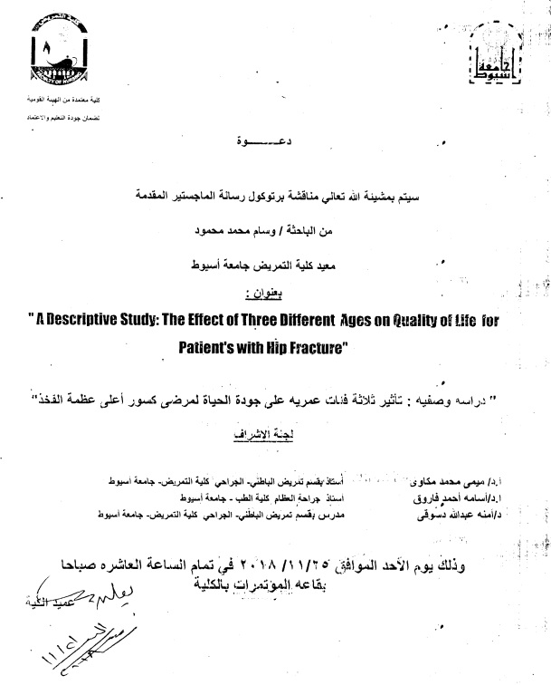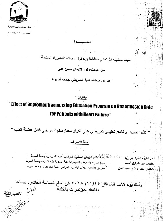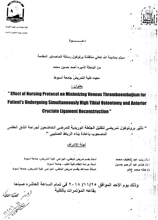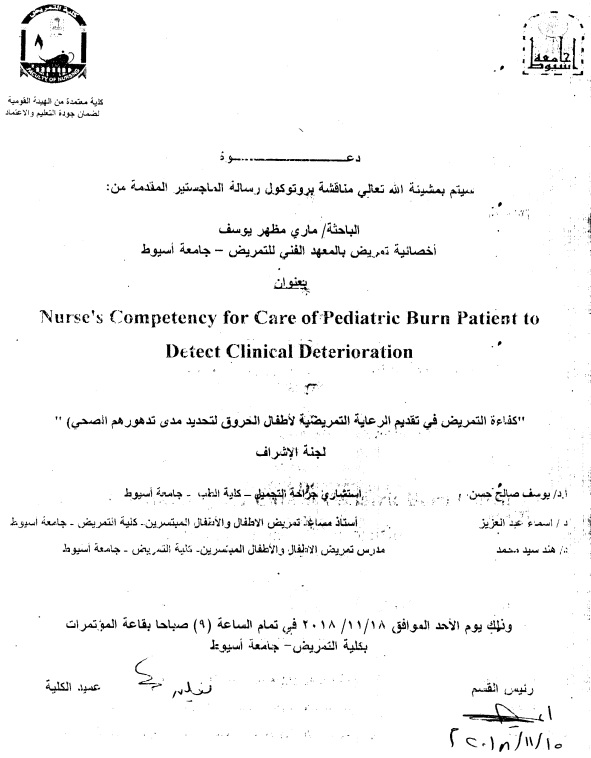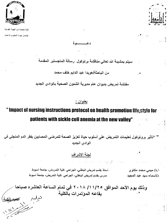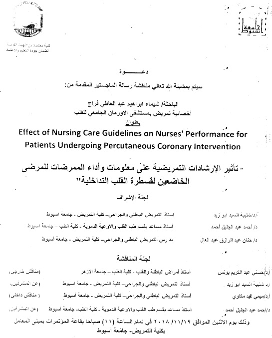منح الطالبة/ أميمة مصطفى عبدالظاهر محمد درجة الدكتوراه فى التمريض (تمريض صحة المجتمع) بتقدير"جيد جداً" من كلية التمريض بالجامعة.