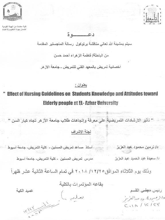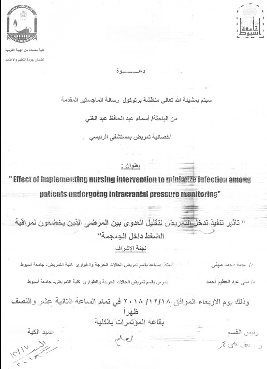 وذلك يوم الأحد الموافق 9/12/2018م بكلية التمريض - جامعة أسيوط.