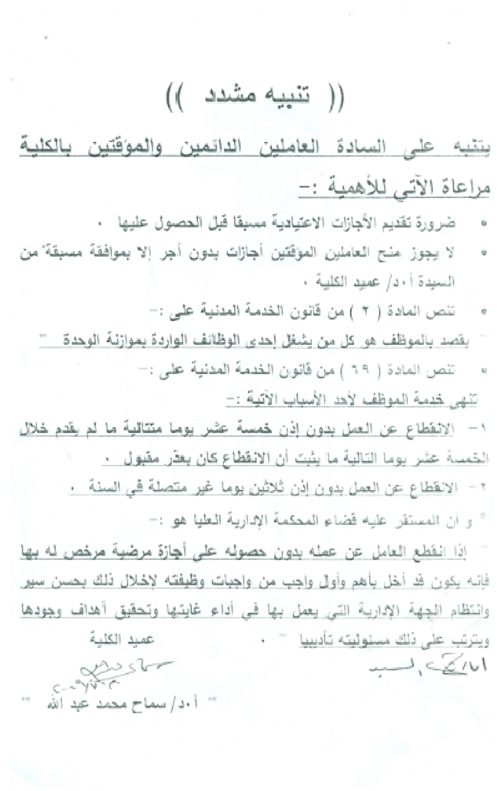 هااام للسادة العاملين الدائمين والمؤقتين بالكلية