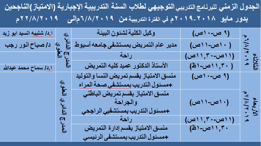 سوف يتم بمشيئة الله تعالى اجتماع مجلس قسم تمريض الباطني والجراحي لشهر أغسطس برئاسة السيدة الأستاذ الدكتور/ زينب عبد اللطيف محمد- رئيس قسم تمريض الباطني والجراحي - وبحضور السادة أعضاء هيئة التدريس ومعاونيهم بالقسم .