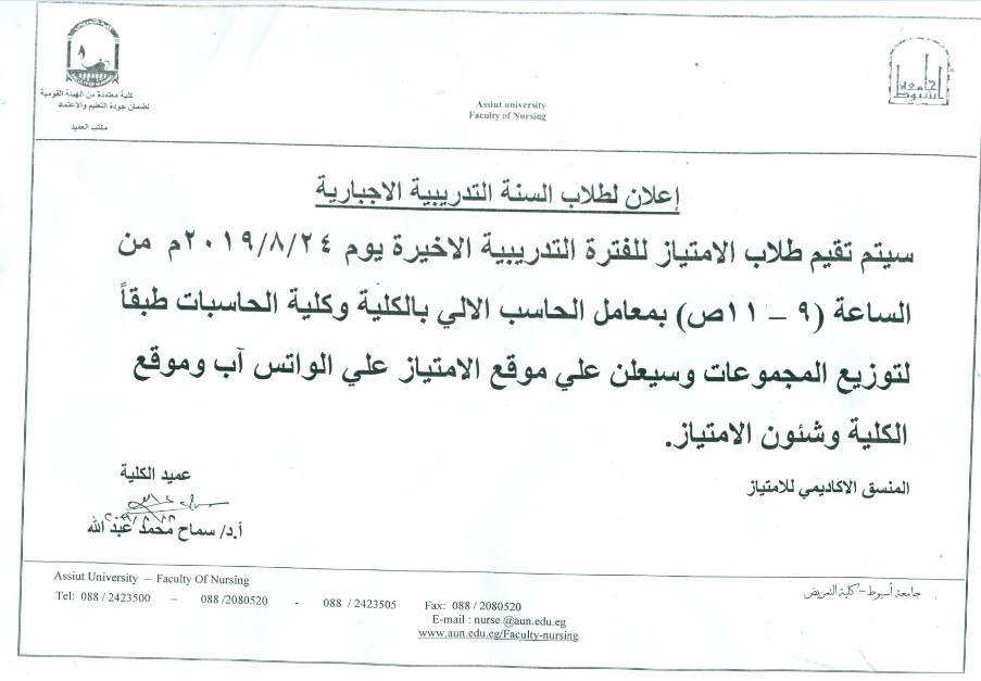 سوف يتم بمشيئة الله تعالى مناقشة رسالة الماجستير الخاص بالباحثة / صباح شعبان عبد السلام فراج أخصائية تمريض بمدرسة أبنوب الثانوية الفنية للتمريض