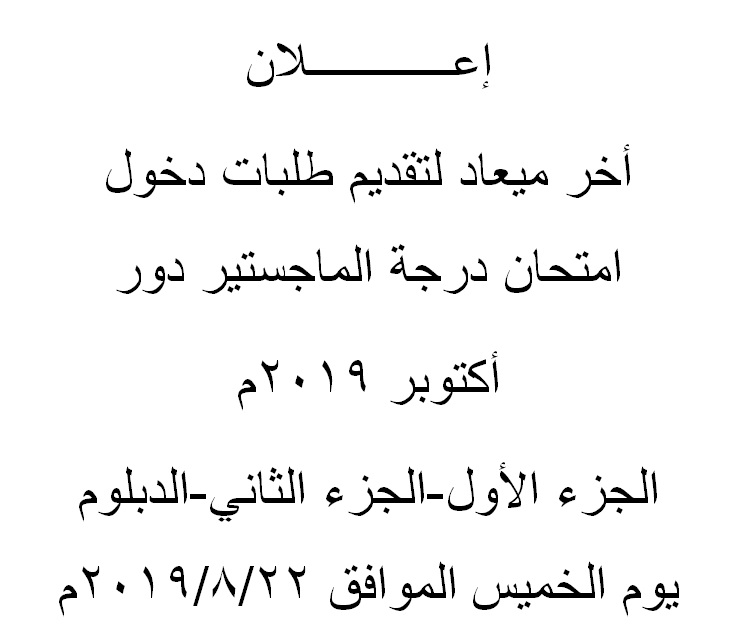 وذلك يوم الأحد الموافق 18/8/2019م في تمام الساعة (11:30) صباحاً بقاعة المؤتمرات بالمبنى الإداري بالكلية