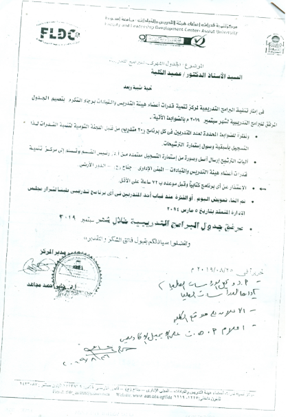 جدول البرامج التدريبية لمركز تنمية قدرات أعضاء هيئة التدريس والقيادات لشهر سبتمبر 2019 بالضوابط الأتية