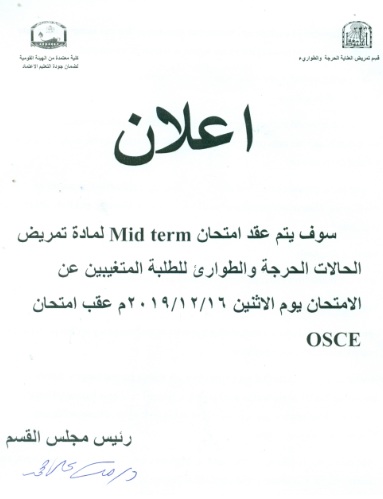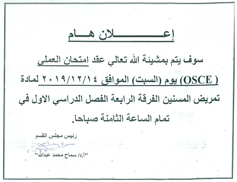 تنبيه هااااام لطلاب الفرقة الرابعة (مجموعة تمريض صحة المجتمع) لأداء الامتحان العملي (OSCE)