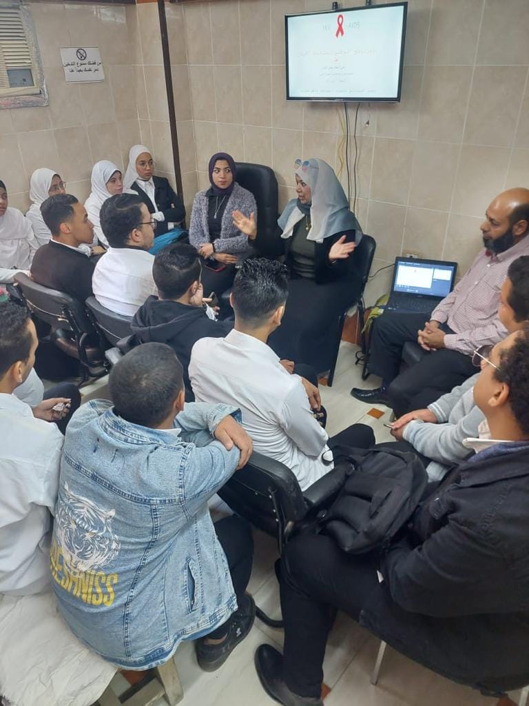 تم عمل تدريب لأعمال المشورة وتعريف مرض نقص المناعة المكتسبة البشرى HIV لطلبة كلية التمريض بالفرقة الرابعة يومي الأربعاء و الخميس الموافق ٧و٨و١٤و١٥/ ١٢/ ٢٠٢٢