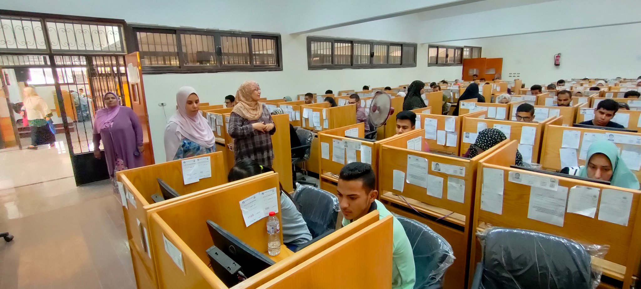 وقام السيد الأستاذ الدكتور/ انتصار محمد يونس وكيل الكلية لشئون التعليم والطلاب بالاطمئنان على انتظام أعمال اللجان وتكاتف جهود السادة المشرفين على أعمال الامتحانات من أعضاء هيئة التدريس والاداريين من أجل مساعدة ورعاية الطلاب مما يسهم في توفير مناخ علمي مناسب للطلاب لأداء الامتحان