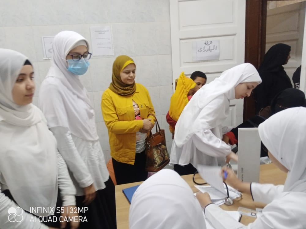 مشاركه طلاب وطالبات كلية التمريض الفرقة الرابعة قسم تمريض صحة الاسرة والمجتمع في المبادرة الرئاسية للكشف المبكر عن الاعتلال الكلوي اثناء التدريب العملي في المركز الصحي بالوليدية