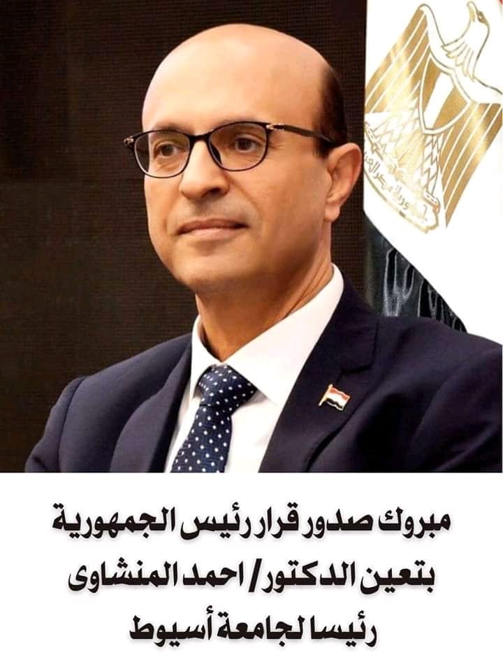 بصدور قرار رئيس الجمهورية بتعيين سيادته رئيسا لجامعة أسيوط متمنينا له مزيد من التقدم والرقى