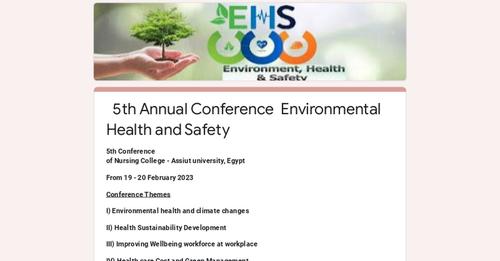 We are honored To Welcome You All To the 5th annual conference Nursing college Assiut University 3rd Upper Egypt Conference Nursing Colleges under the Theme of Environmental Health and Safety