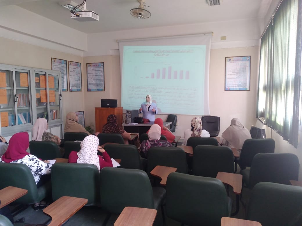 بحضور السادة رؤساء الأقسام والسادة أعضاء هيئه التدريس بالأقسام المختلفة حيث حاضرت بالورشة السيد الأستاذ الدكتور فاطمة رشدي محمد رئيس الوحدة وتنازلت الورشة اهم الموضوعات عن التقويم الشامل عن الامتحانات وكذلك فتح باب المناقشة والرد على جميع التساؤلات بالورشة