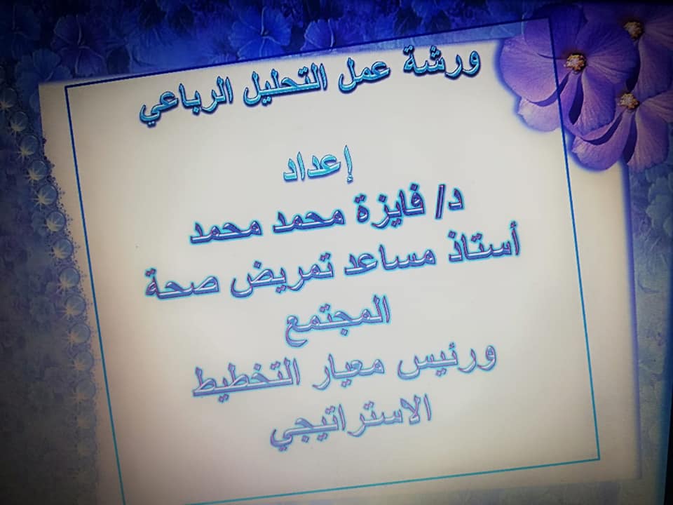 تم اليوم عقد ورشة عمل عن التحليل البيئي للكلية (التحليل الرباعي) للجهاز الإداري بالكلية والتي تستهدف تحديد نقاط القوة والضعف وكذلك الفرص والتهديدات وذلك تمهيدا لإعداد الخطة الاستراتيجية ٢٠٢٨/٢٠٢٣ وقامت بعمل الورشة السيدة الدكتورة فايزة محمد محمد رئيس معيار التخطيط الاستراتيجي بالكلية