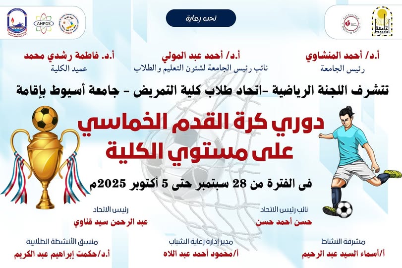Today, Professor Dr. Fatima Rushdi Mohamed, Dean of the Faculty of Nursing, inaugurated the 2025 Futsal League, which includes students from: