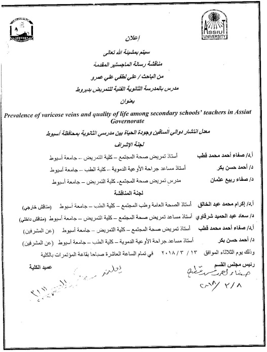 " Prevalence of varicose veins and quality of life among secondary schools' teachers in Assiut Governorate "