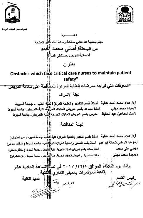 " Obstacles which face critical care nurses to maintain patient safety "