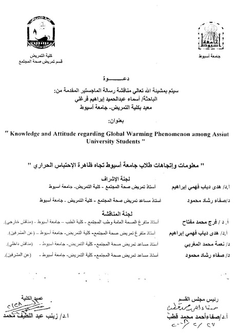 " Knowledge and attitude regarding global warming phenomenon among Assiut University students "