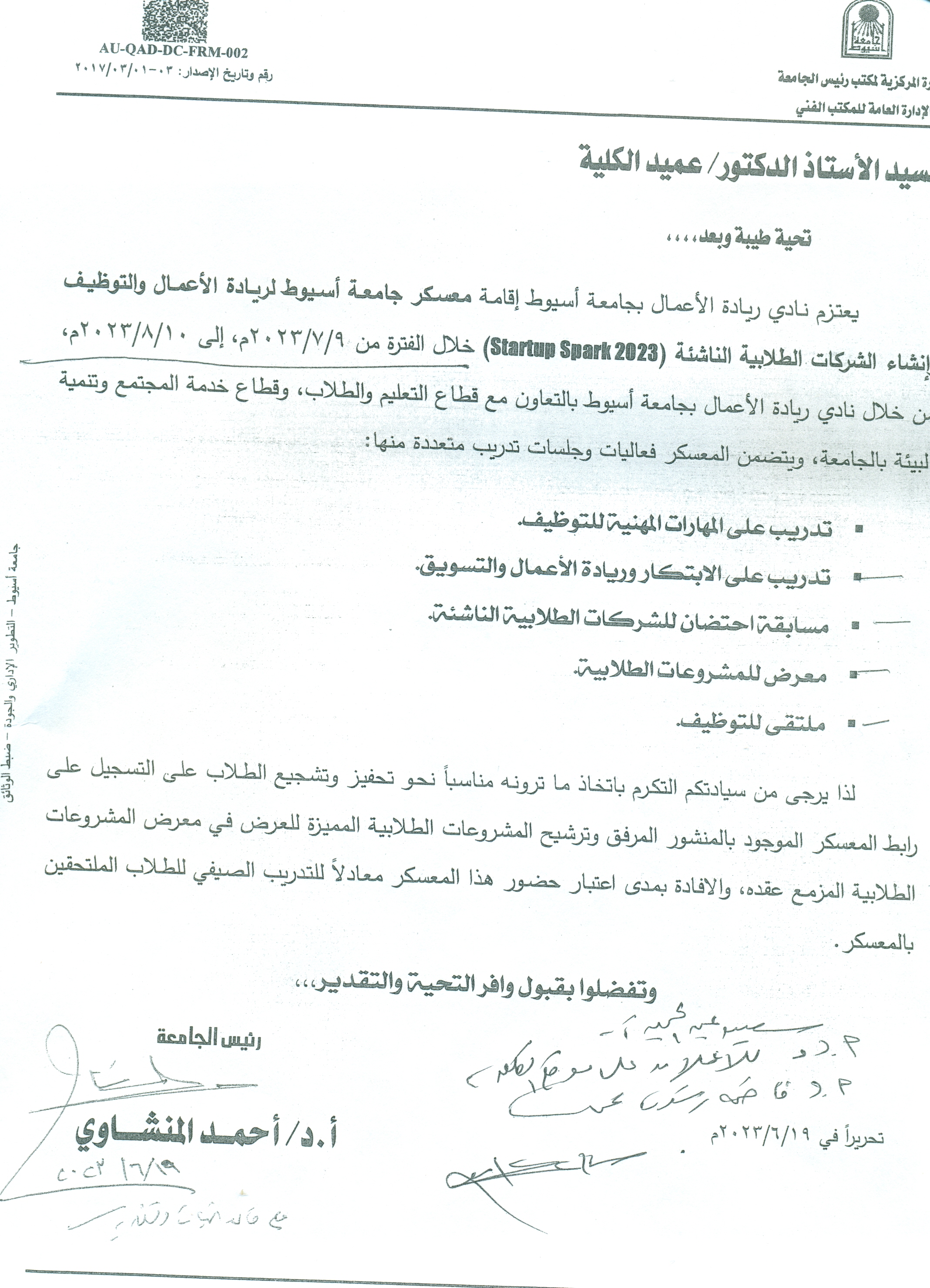 The Entrepreneurship Club at Assiut University intends to establish an Assiut University camp for entrepreneurship, employment and the establishment of emerging student companies