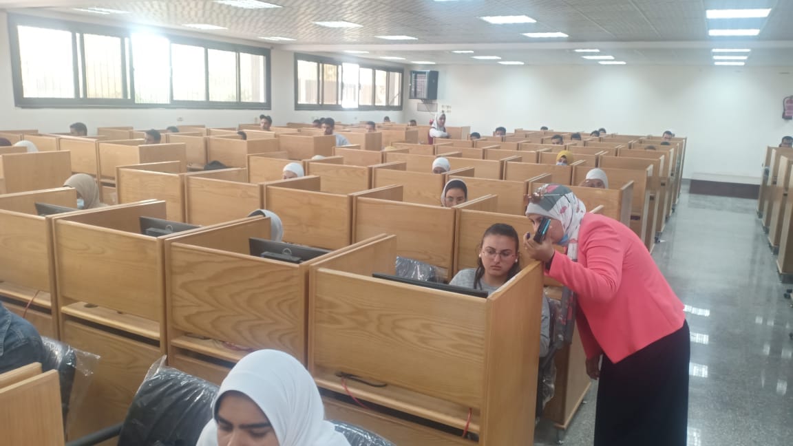 And Prof. Dr. Entisar Muhammad Younes, Vice Dean for Education and Student Affairs And the supervision of Dr. / Amal Sayed Mohamed, director of the electronic exams unit at the college And the follow-up of Prof. Dr. Magda Ahmed Mohamed, Head of the Department of Internal and Surgical Nursing And faculty members of the department The performance of the students of the first squad, the electronic exam for the basics of nursing at nine in the morning at the University's Electronic Test Center