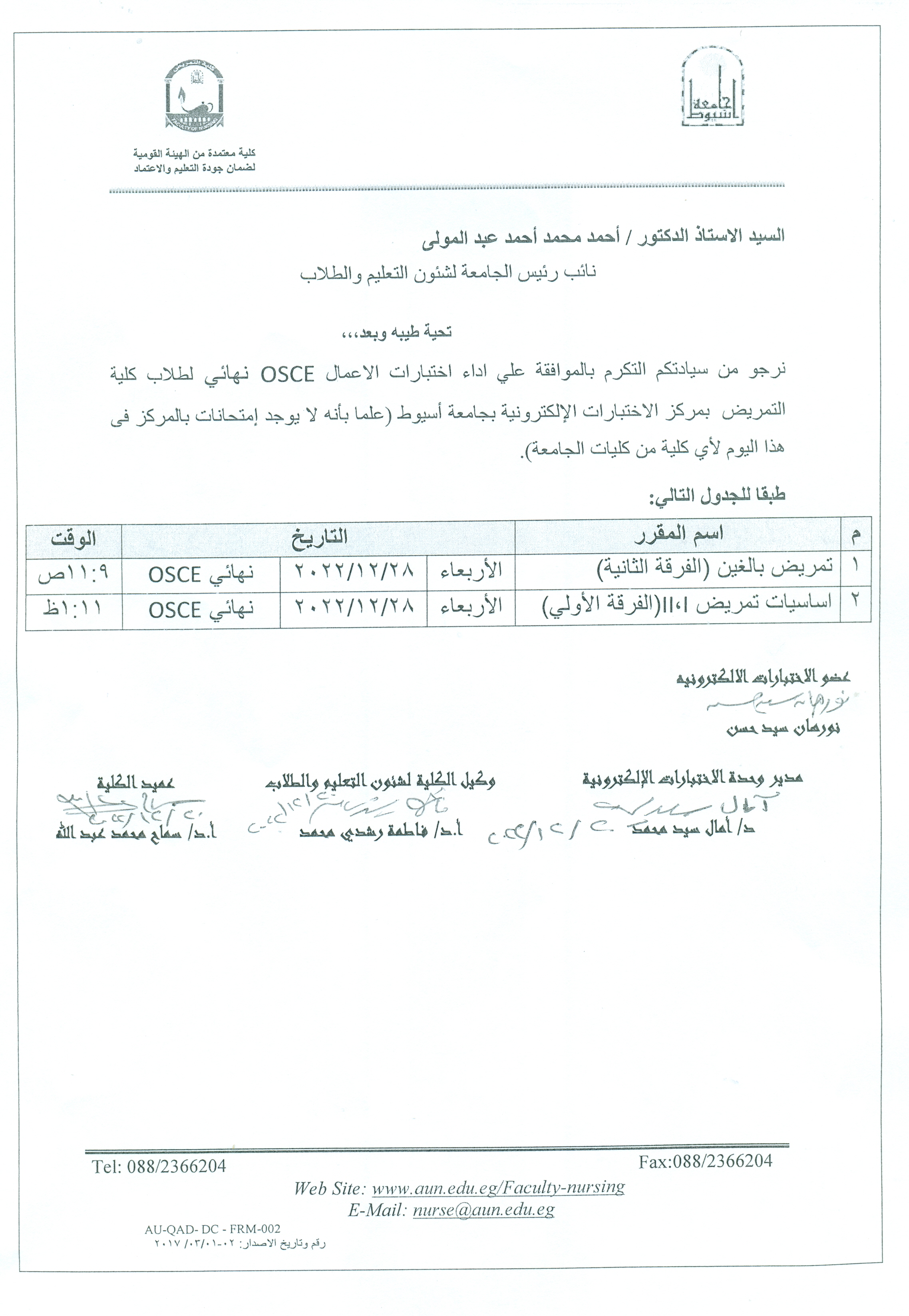 Prof. Dr. Fatima Rushdi Mohammed, Dean of the Faculty of Nursing at Assiut University, along with the Vice Deans, Heads of Academic Departments, and all administrative staff, extend their warmest heartful congratulations