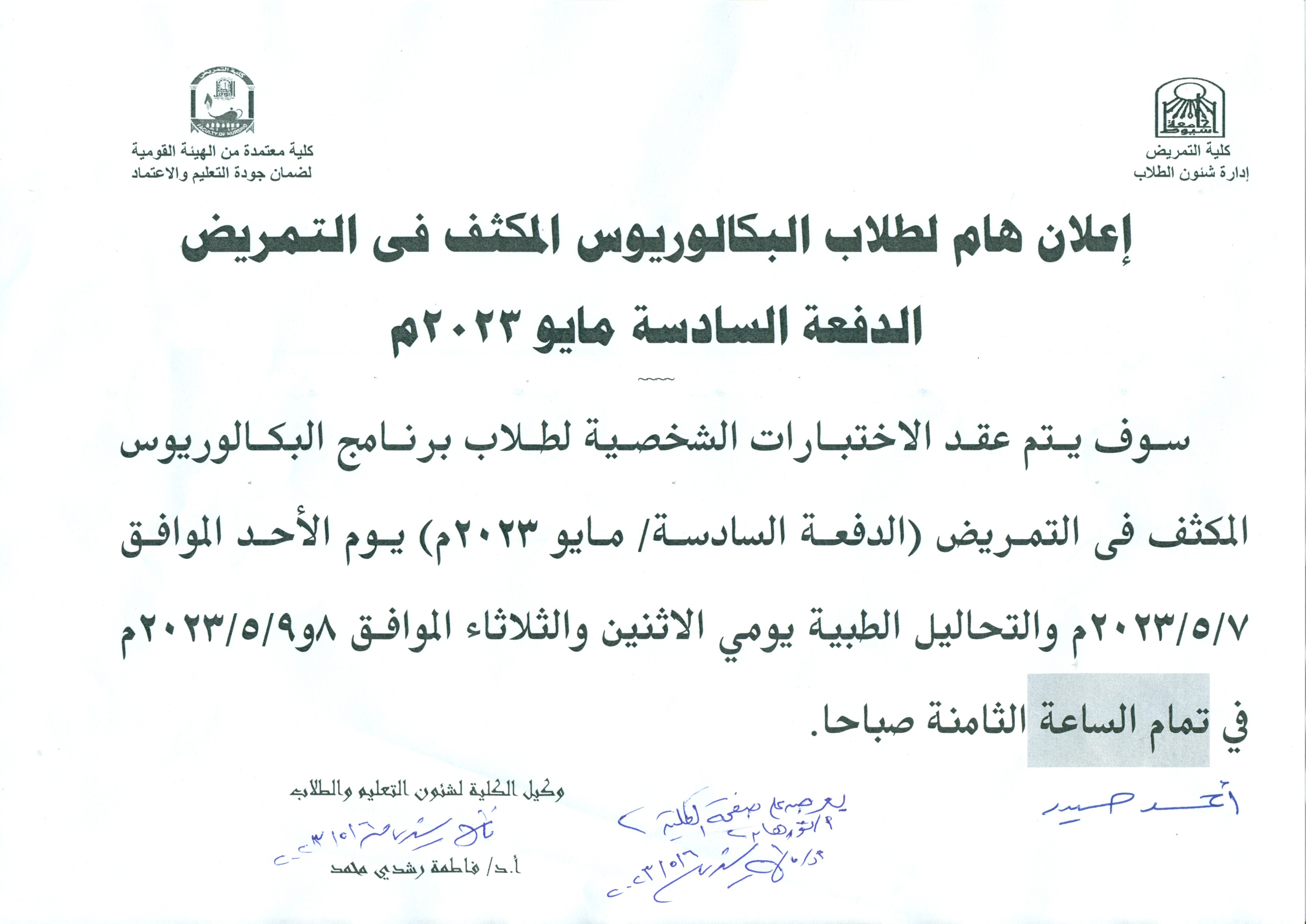 Important Announcement *** For accelerated Bachelor's Students in Nursing, the sixth batch, May 2023 AD 6 May 2023