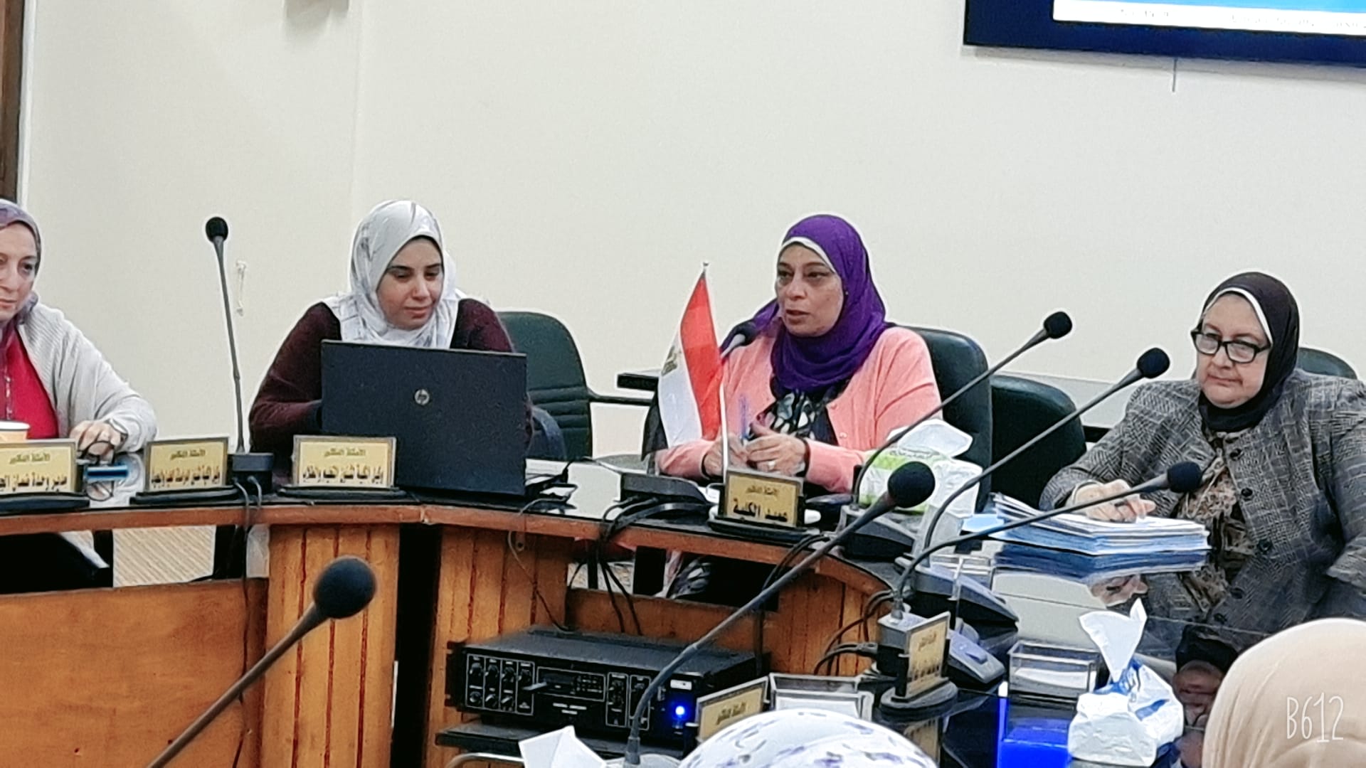 السيد الاستاذ الدكتور/ سماح محمد عبدالله عميد الكلية تبدء مجلس الكلية بجلستة رقم (١١٧) بتقديم الشكر والامتنان لجميع اعضاء مجلس الكلية على تجديد الثقة لسيادتها لفترة عمادة ثانية كما تقدمت لهم بالتهنئة بمناسبة ليلة النصف من شعبان وحلول شهر رمضان.