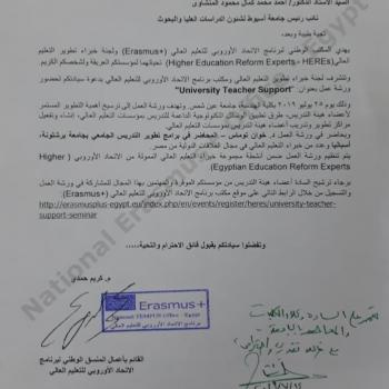 A call from the Higher Education Development Experts Committee and the Office of the European Union Higher Education Program to attend a workshop entitled "University Teacher Support"