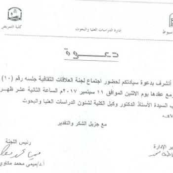 By God willing, meeting of cultural relations committee chaired by Prof. Dr./ Mimi Mohamed Mekawy, Vice Dean for Graduate Studies and Research, will be held on Monday, 11/9/2017, at 12:00 noon, at…