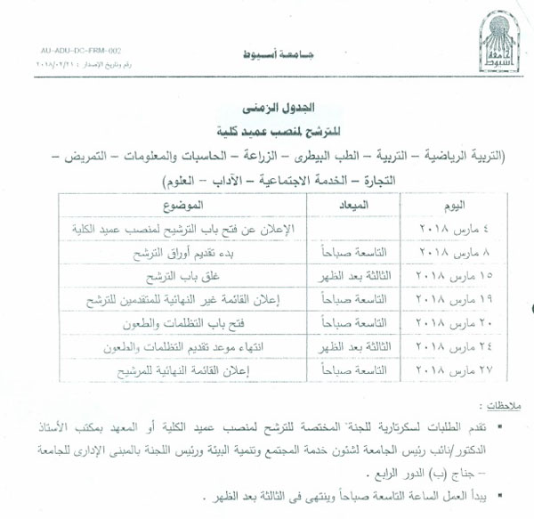 الإعلان عن فتح باب الترشيح لمنصب عميد الكلية 4 مارس 2018 الإعلان عن فتح باب الترشيح لمنصب عميد الكلية