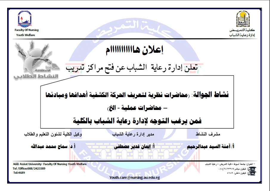 إعلان إدارة رعاية الشباب عن فتح مراكز تدريب نشاط الجوالة 1 أكتوبر 2017 إعلان إدارة رعاية الشباب عن فتح مراكز تدريب نشاط الجوالة