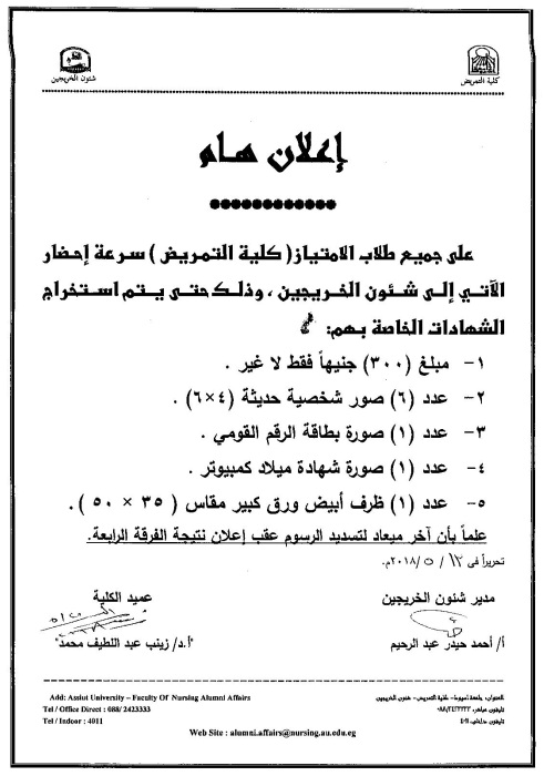 إعلان هاااام لطلاب الامتياز (لاستخراج الشهادات الخاصة بهم) 6 يونيو 2018 إعلان هاااام لطلاب الامتياز (لاستخراج الشهادات الخاصة بهم)