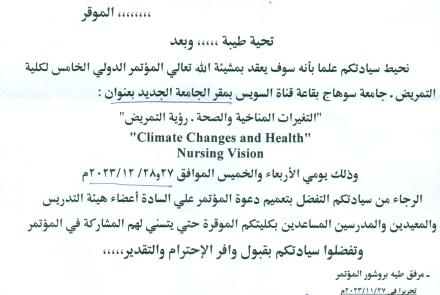 سوف يعقد بمشيئة الله تعالي المؤتمر الدولي الخامس لكلية التمريض - جامعة سوهاج بقاعة قناة السويس بمقر الجامعة الجديد