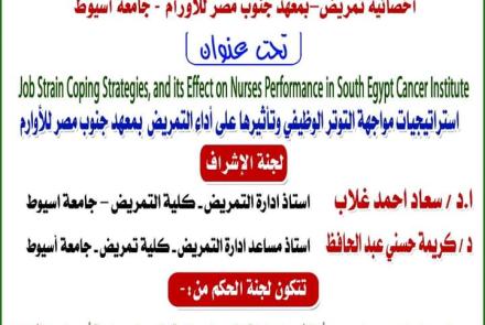 بالصور حصول رسالة الماجستير الخاصة بالباحثة/رولا سامى نيسان ابو اليمنى أخصائية تمريض بمعهد جنوب مصر للاورام على تقدير امتياز .