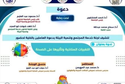 ندوة بعنوان ا لتغيرات المناخية واثارها على الصحة