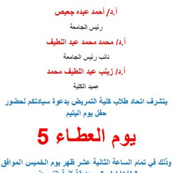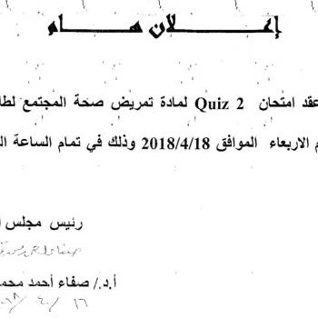 سوف يتم عقد امتحان mid term لطلاب الفرقة الأولى مادة تمريض الباطني والجراحي I يوم السبت 14/4/2018م الساعة 10 صباحاً.